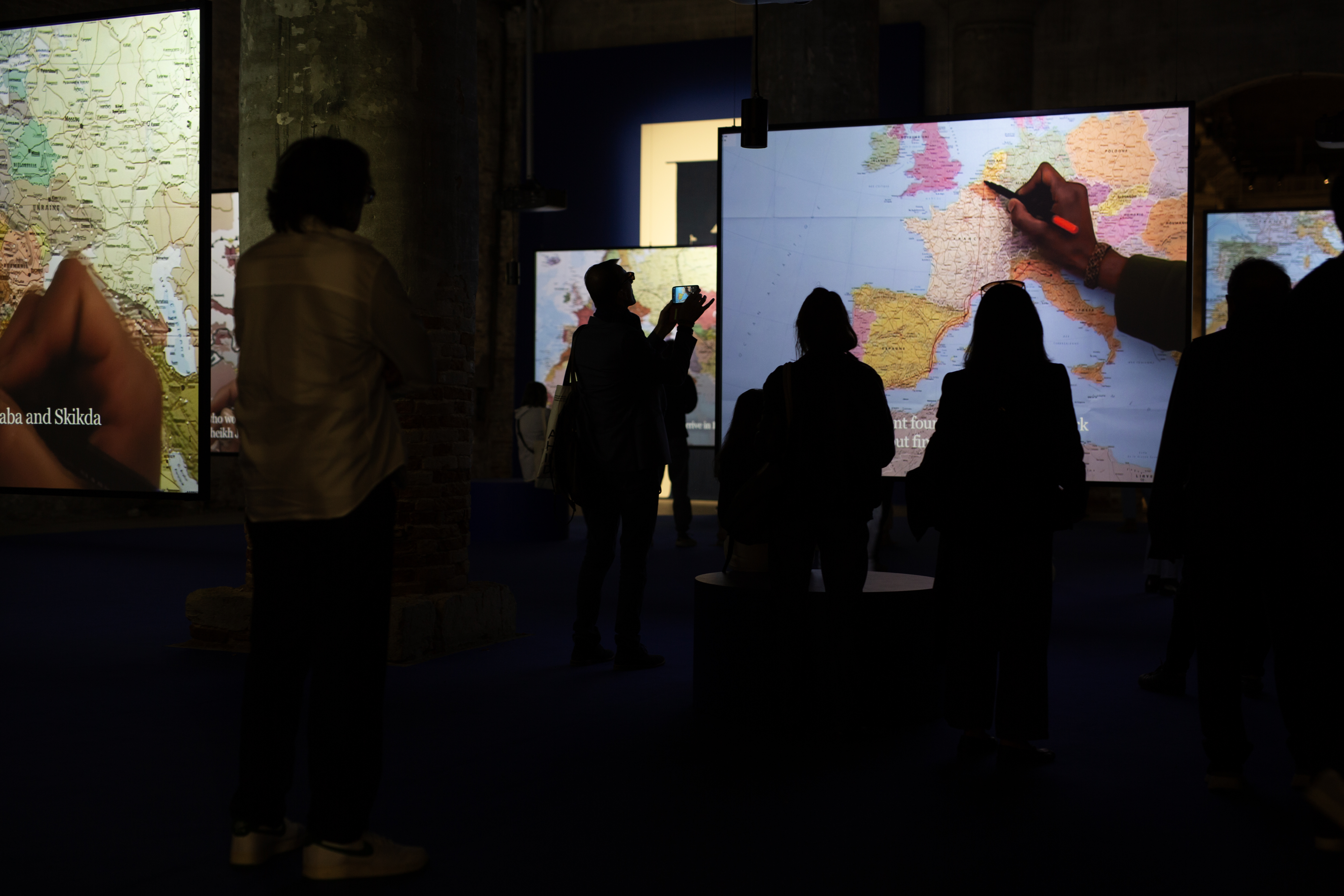Bouchra Khalilis fluktruter er blant prosjektene som har fått mest plass på årets biennale, og med god grunn. Den marokkanske Wien-baserte kunstneren er kjent for å utforske temaer som migrasjon, diaspora, nasjonalitet og identitet med et anti-kolonialistisk blikk. Hver av de åtte skjermene som bryter opp det store rommet, viser hånden til en migrant som tegner på et kart mens de beskriver sine lange og frustrerende reiser inn til Europa fra Afrika, Midtøsten og Sør-Asia. Deres vitnesbyrd bryter stillheten til en voksende gruppe mennesker som ofte svartmales i vestlige medier. Ved å vise en historie av gangen, minner Khalili samtidig om å ikke skjære alle over én kam.