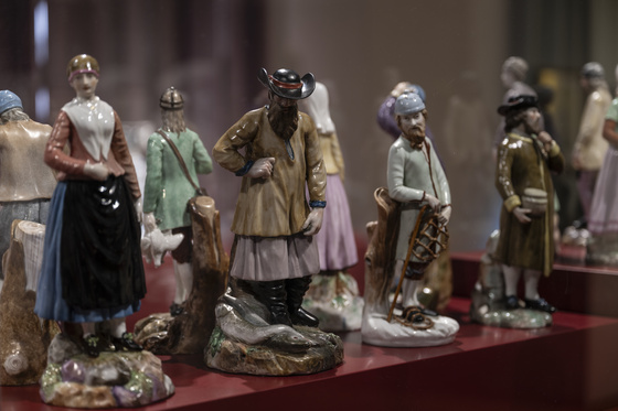 Fra utstillingen på KODE: Figurer fra Nordmandsdalen fra Den kongelige porcelainsfabrik. Figurer fra samlingen til Kode og Frederiksborg Nationalhistorisk Museum. Foto: Thor Brødreskift