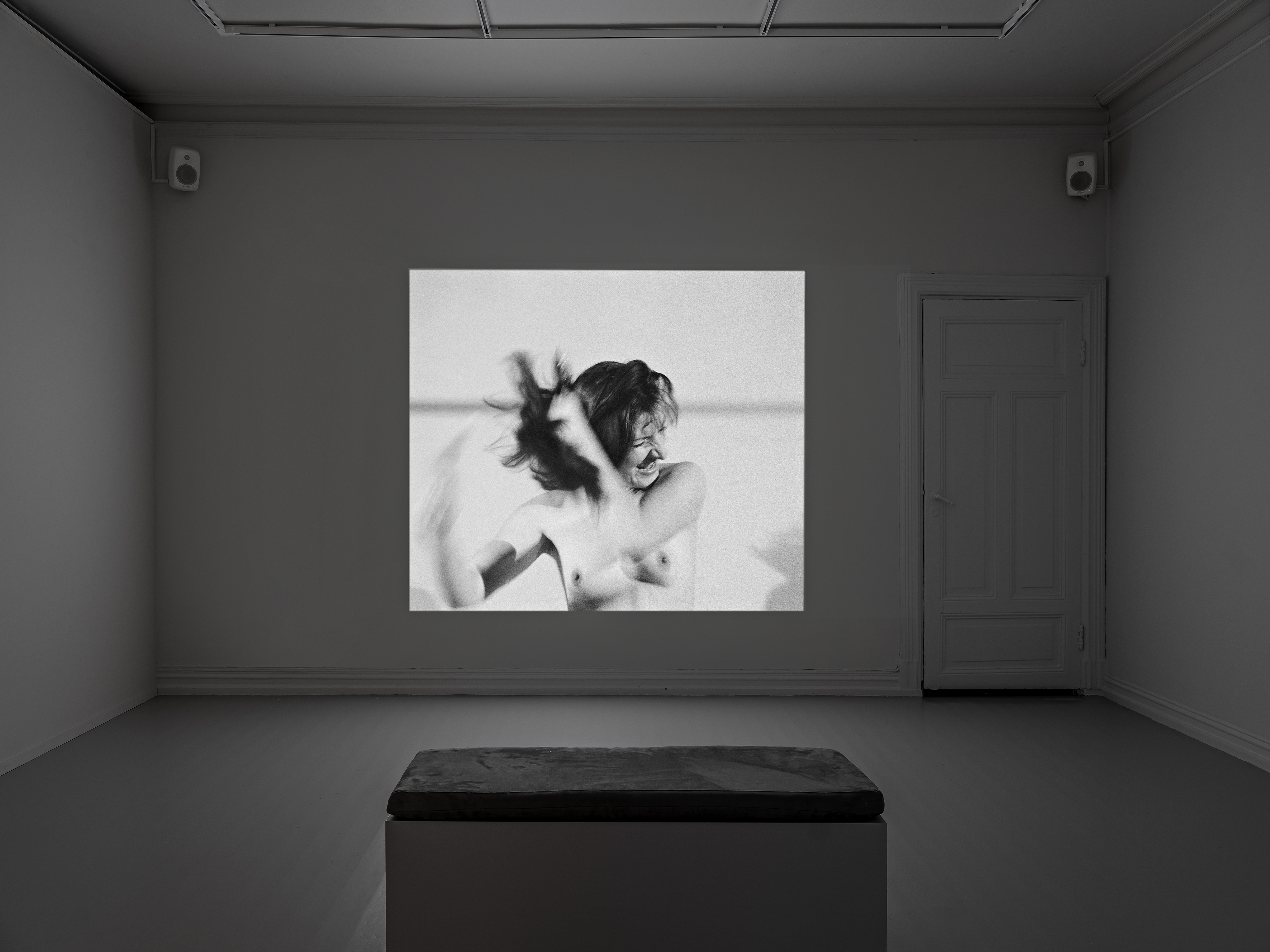 Installasjonsfoto fra Marina Abramović Art Must Be Beautiful, Artist Must Be Beautiful. Performance for video, 1975. Med tillatelse fra Marina Abramović Archives. Foto: Vegard Kleven © 2025 Galleri F 15.