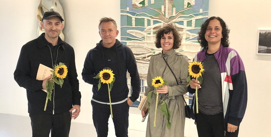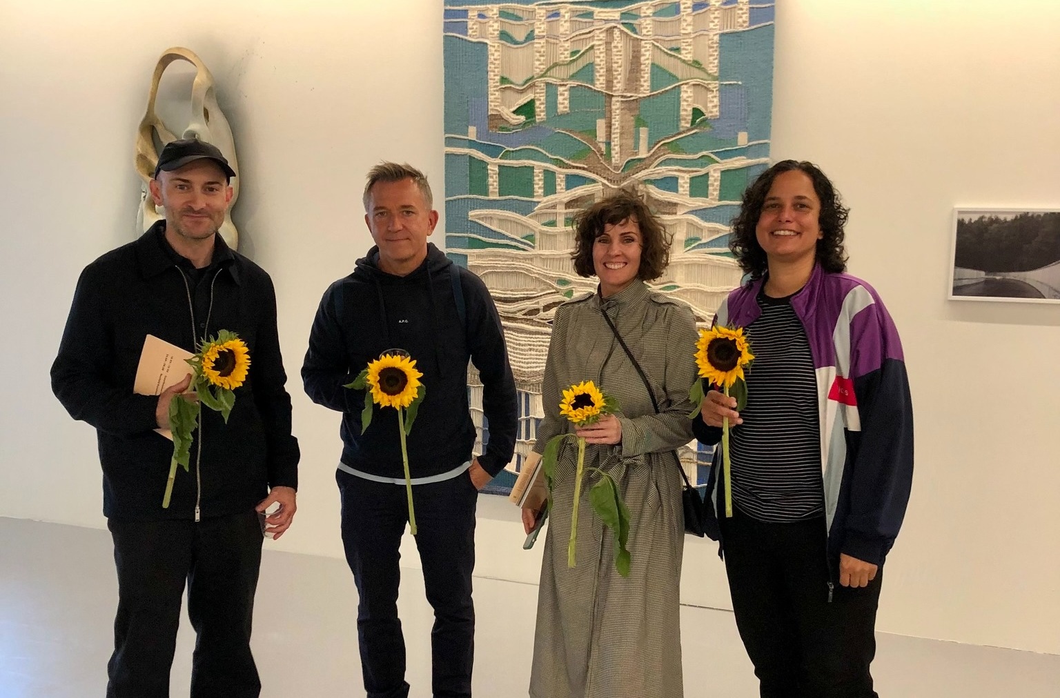 Deltakende kunstnere på åpning av Østlandsutstillingen på Vestfold Kunstsenter i 2024: Anton Benois, Damian Heinisch, Linda Bournane Engelberth og Maya Økland. Foto: Josephine Lindstrøm