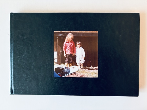 Ja, vi har laget en klisjé, et hulrom på forsiden av boka, hvor det skal ligge et fotografi av søsteren min og meg fra 70-tallet. Planen er at min søster skal bli med å lime på dette mangfoldiggjorte fotografiet, ett for ett, på samtlige 200 eksemplarer. Det er det vi to skal gjøre i tiden etter ferdigstillelsen her fra trykkeriet. Jeg vet imidlertid ikke hvor mye hun klarer. Hun har blitt mye dårligere den siste tiden. Det blir på et vis samme metode som det har vært i hele kunstprosjektet Memory, hvor hun er med underveis i prosessen.