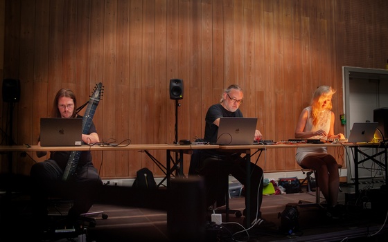 F.v.: Mathieu Lacroix, Ernst van der Loo og Natasha Barrett. Under konsert på Lydbølgefestivalen i fjor. Foto: Gavin Toomey