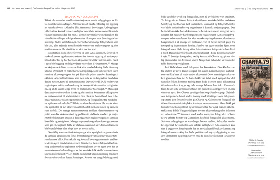 S. 180 - 181: Samspillet mellom tekst og bilder er ofte avgjørende for tolkningen av bilders budskap. Her med Alta - Aksjonen og Charta 79, som eksempel. Oppslag fra boken Sørlie, Langgåt, Oulie, Østgaard Lund: Synlig til stede. Om hvordan fotografi har endret Norge etter 1945. Forlaget Press 2025. Design: Bengt Olsson