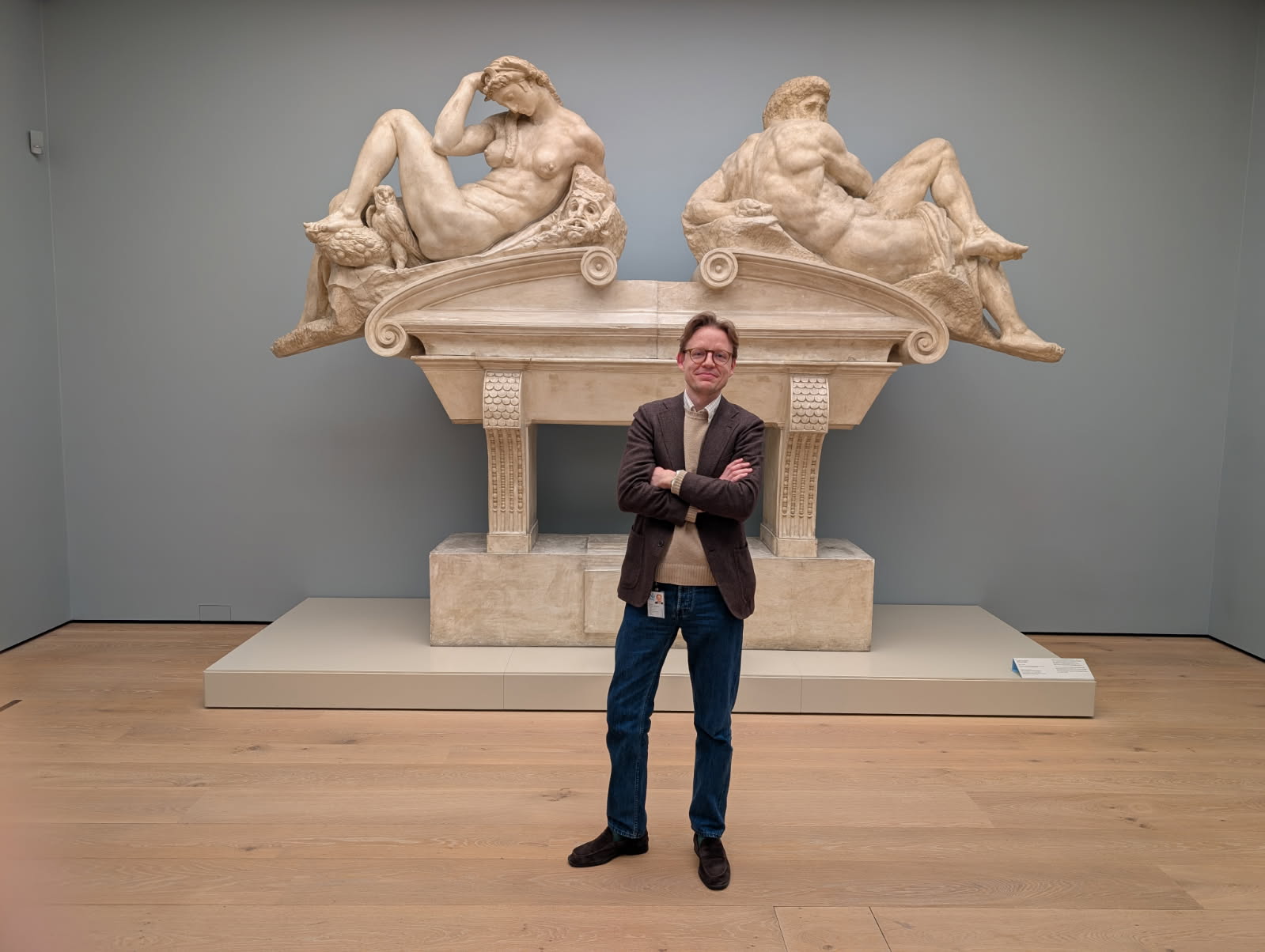 Jeg spøkte med en kollega at jeg gjerne kunne bruke den første uken på å skrive litt ekfraser over den permanente samlingen, i.e. fungere som en slags huspoet. Men fra spøk til alvor vil arbeidet mitt med kunsthistorie på forskningsplan, på kritisk- og skribentmessig plan forhåpentligvis kunne komplementere den eksisterende kompetansen på i bredden og i mer spesialiserte sammenhenger. Selv om jeg har en faglig spiss inn mot 15- og 1600-tallet interesserer jeg meg for og har skrevet om kunst på 18-, 19- og 2000-tallet, så her håper jeg at generalistsiden min kan komme til nytte. Poeten i meg er nok hakket mer krevende å få aktivert i denne nye rollen, men jeg får kanskje la det være med et håp om at poesien, på en eller en annen måte, i en eller annen form, kan blø inn i kuraterings- og samlingsarbeidet; om ikke annet enn et slags blikk på tingene.