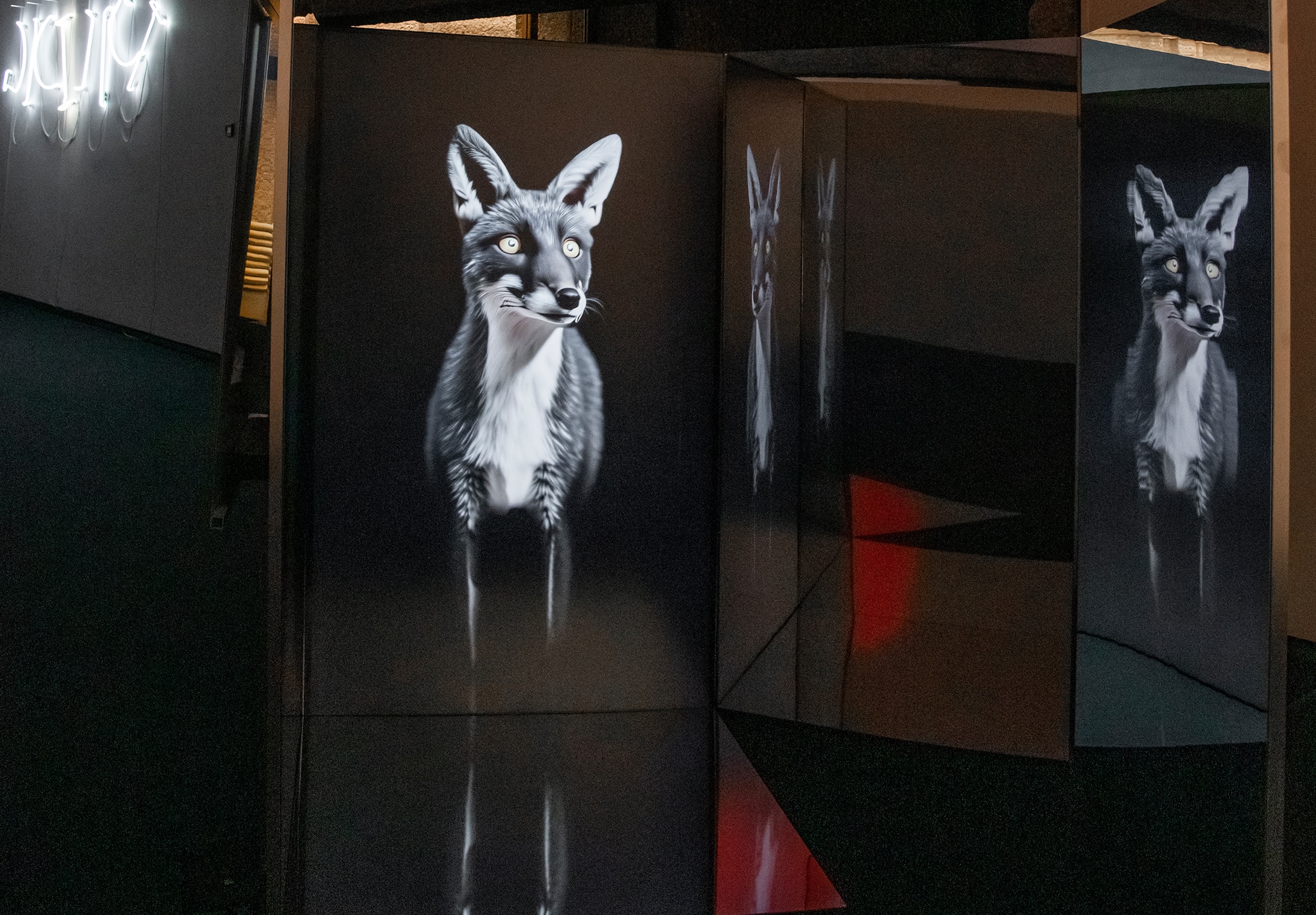 Uglen ses ofte som orakel, som en fugl som vet mer og noe annet enn mennesker og som har tilgang til magiske hemmeligheter. Tekstbrokkene til uglen og den sorte «reven» blir som lydene fra verdensrommet i lydverket A Space Opera (2016-25), mediert gjennom filmen Contact (1997) og gjenskapt av en menneskelig «beatboxer», til meldinger og henvendelser fra andre steder og andre tider og andre vesener. Under utstillingens temaer ligger spørsmålet om hvordan mennesker fremover skal kunne komme i «autentisk» kontakt med teknologien som kan – og truer med å - erstatte oss. Blade Runner inneholder jo en love story mellom Rachel og Decard, der spørsmålet om forholdet mellom biologisk menneskelige følelser og replikaers, er en av spenningstriggerne i filmen. Det spørsmålet stiller vi oss også på denne utstillingen.