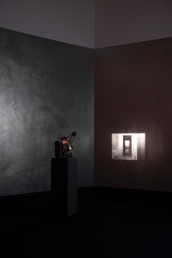 Med dette verket som viser en digital film av en rekke dører som åpner og lukker seg innover i en lang gang, tidshopper kunstneren. Men hun tidshopper her fra en – ikke fullt begripelig – fremtidig nåtid tilbake til en pre-digital filmvirkelighet, mange av oss husker godt. For den digitale filmflyten vi ser på veggen er tilbakeført til 16 mm celliod film, som vises på en tradisjonell filmfremviser som står som en skulptur på en sokkel og viser filmen på en sølvmalt vegg.